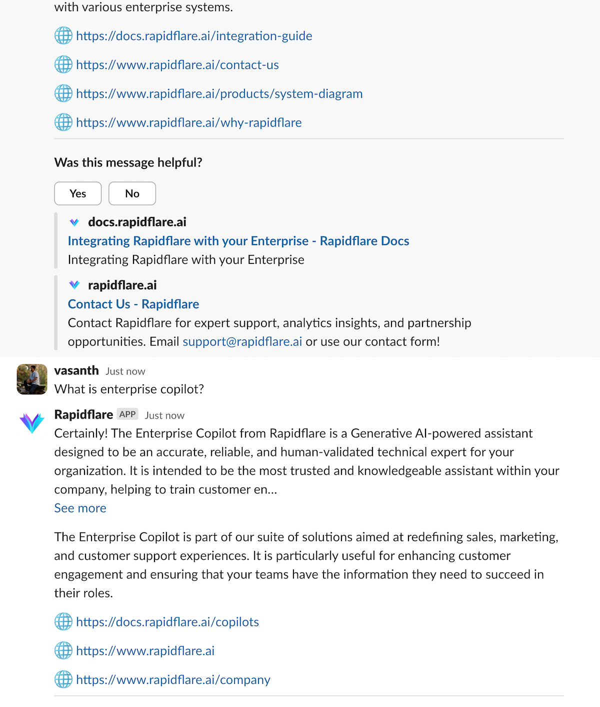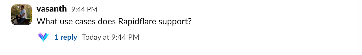 For follow up questions, use the "@" mention method again so Rapidflare knows when to respond to you.