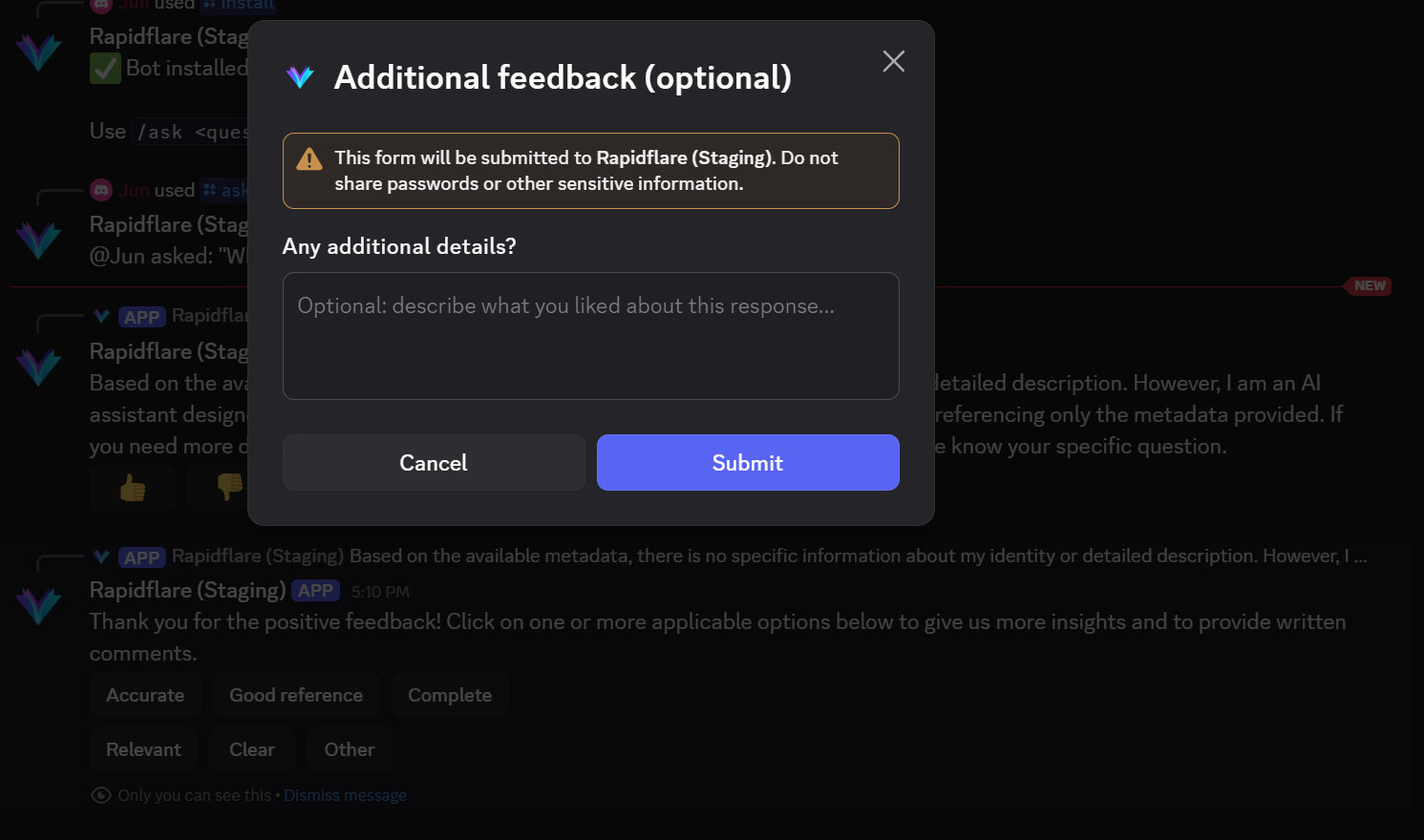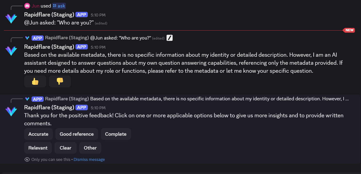 Use the /ask command to ask questions to the Rapidflare Copilot.