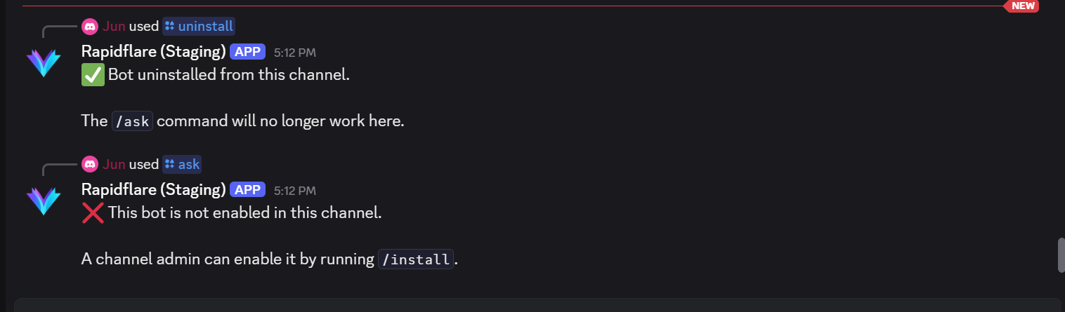 /uninstall | Deactivate the bot from a channel | Manage Channels |