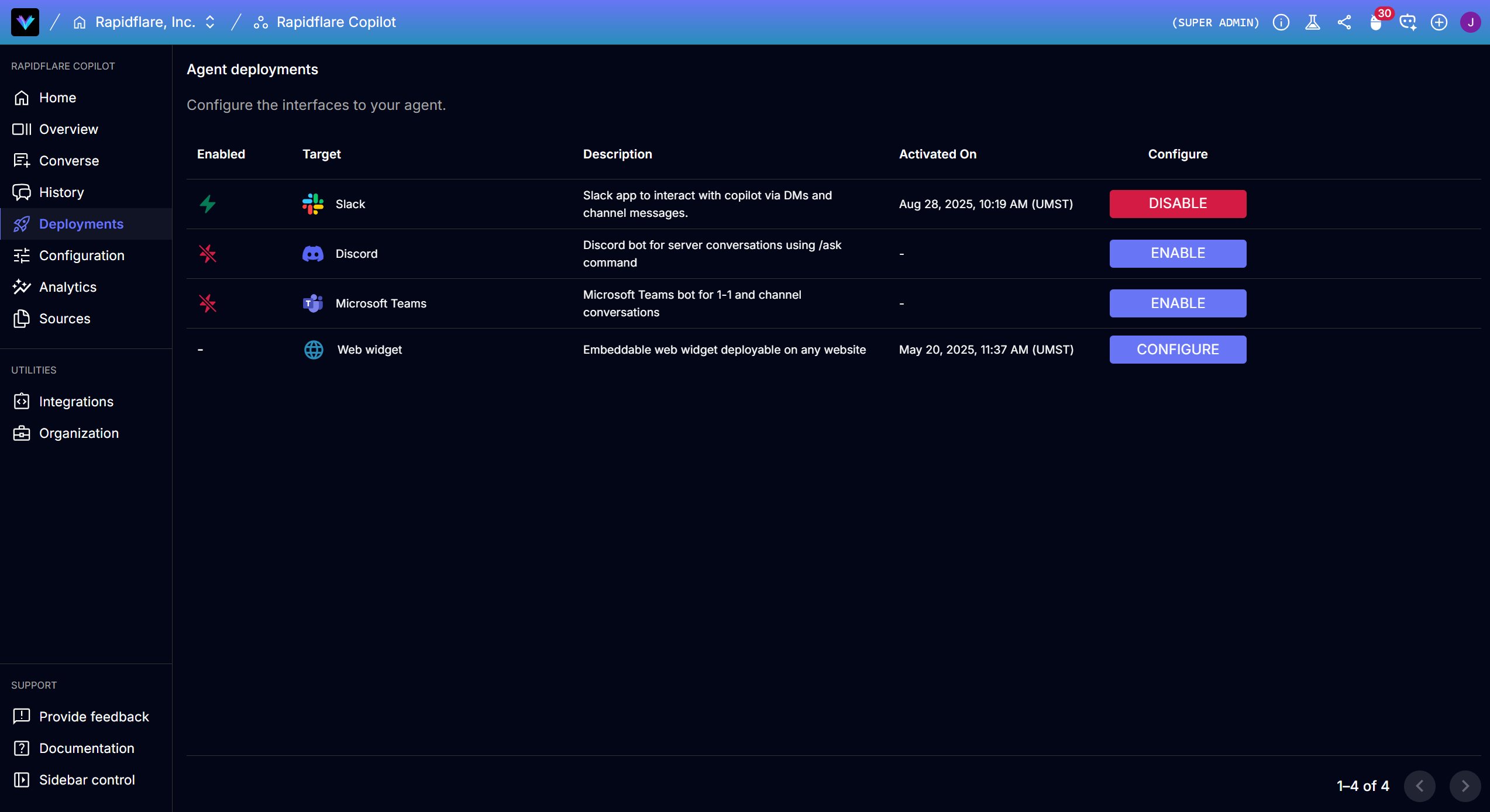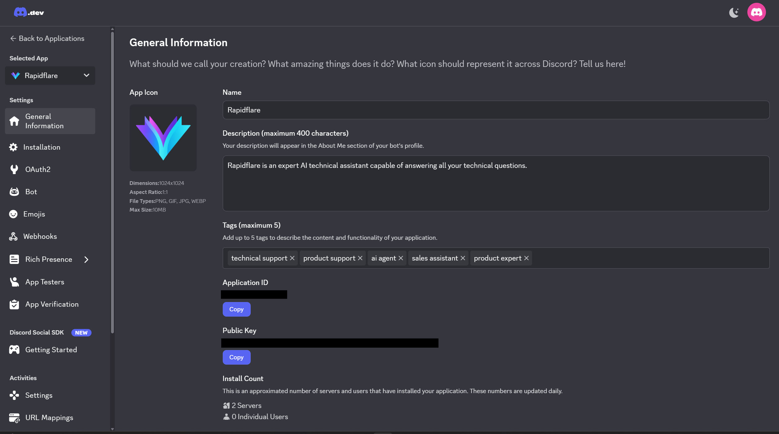 Congratulations! Your Discord bot is now connected to Rapidflare Copilot.