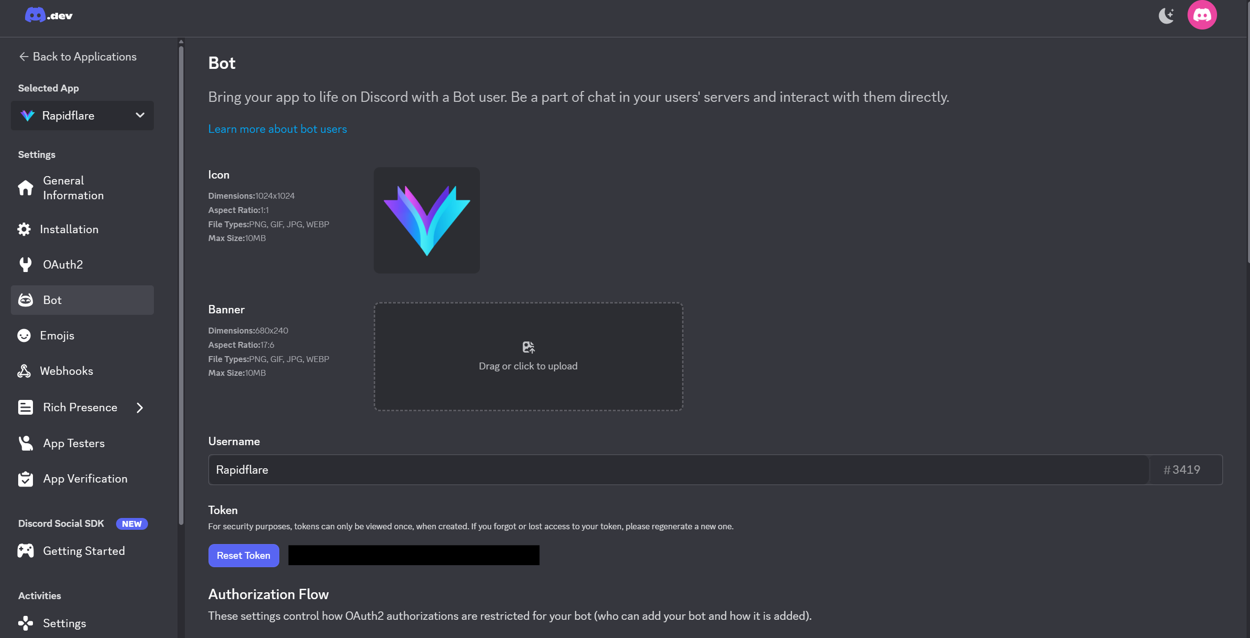 This guide will help you learn how to integrate Rapidflare into your Discord server. This is an admin flow.
