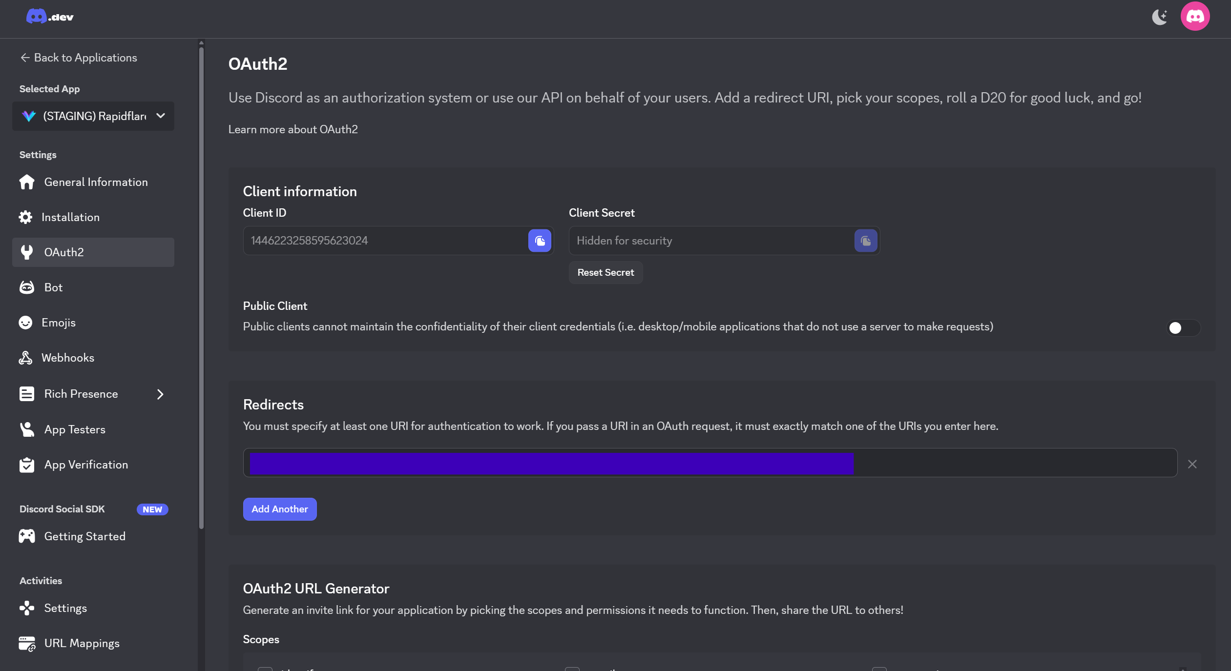 Step 4: Set Redirect URLs in Discord Developer Portal